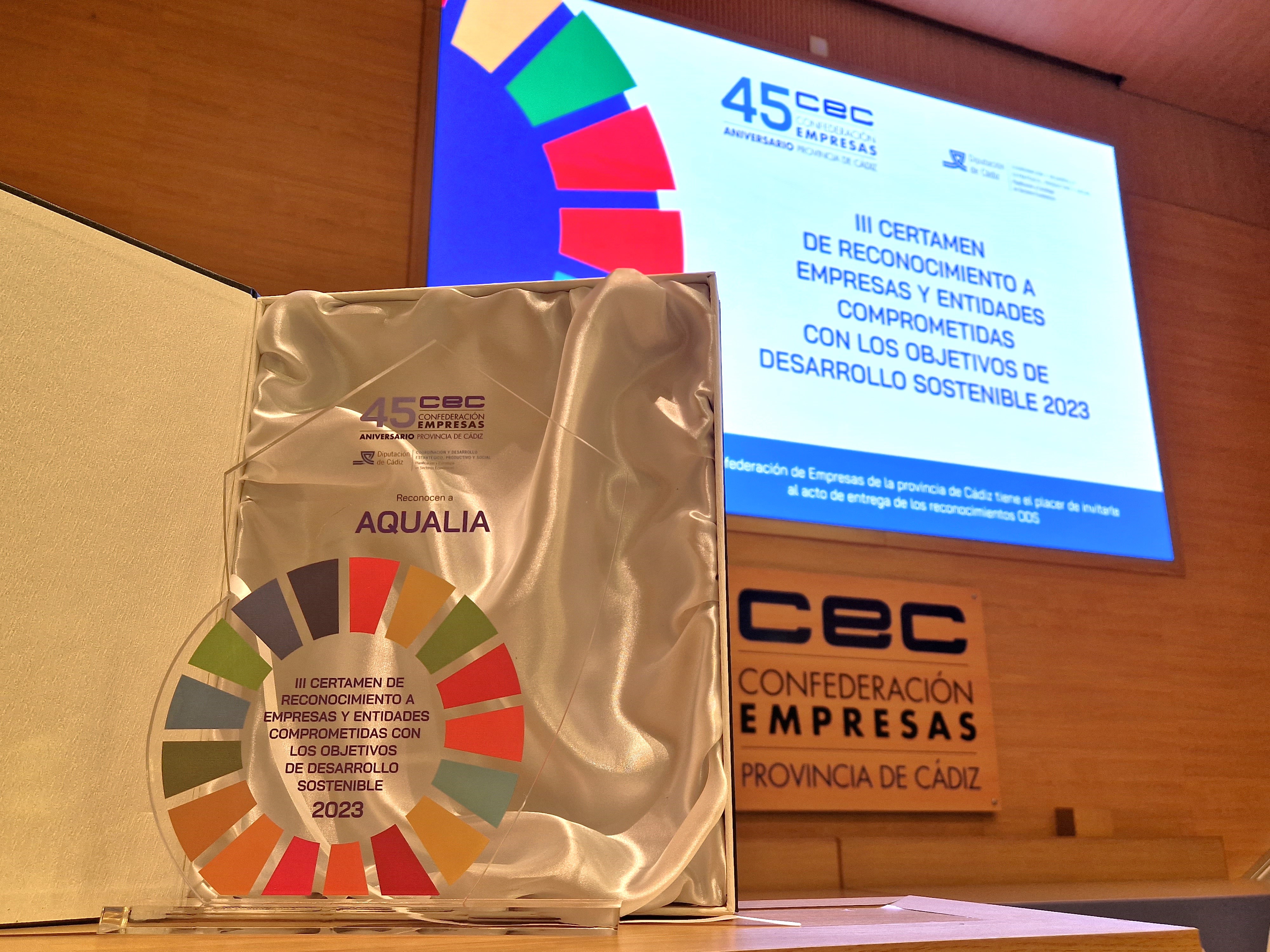 Hoy se conmemora el 8º aniversario de los Objetivos de Desarrollo Sostenible de la ONU. Esta significativa fecha es la que ha elegido la Confederación de Empresarios de la provincia de Cádiz (CEC) para realizar la entrega de premios de su III Certamen de Reconocimiento del Compromiso Empresarial por los Objetivos de Desarrollo Sostenible (ODS) a 18 empresas y entidades, entre las que se encuentra Aqualia, gestora de los servicios municipales de agua de 16 localidades gaditanas.