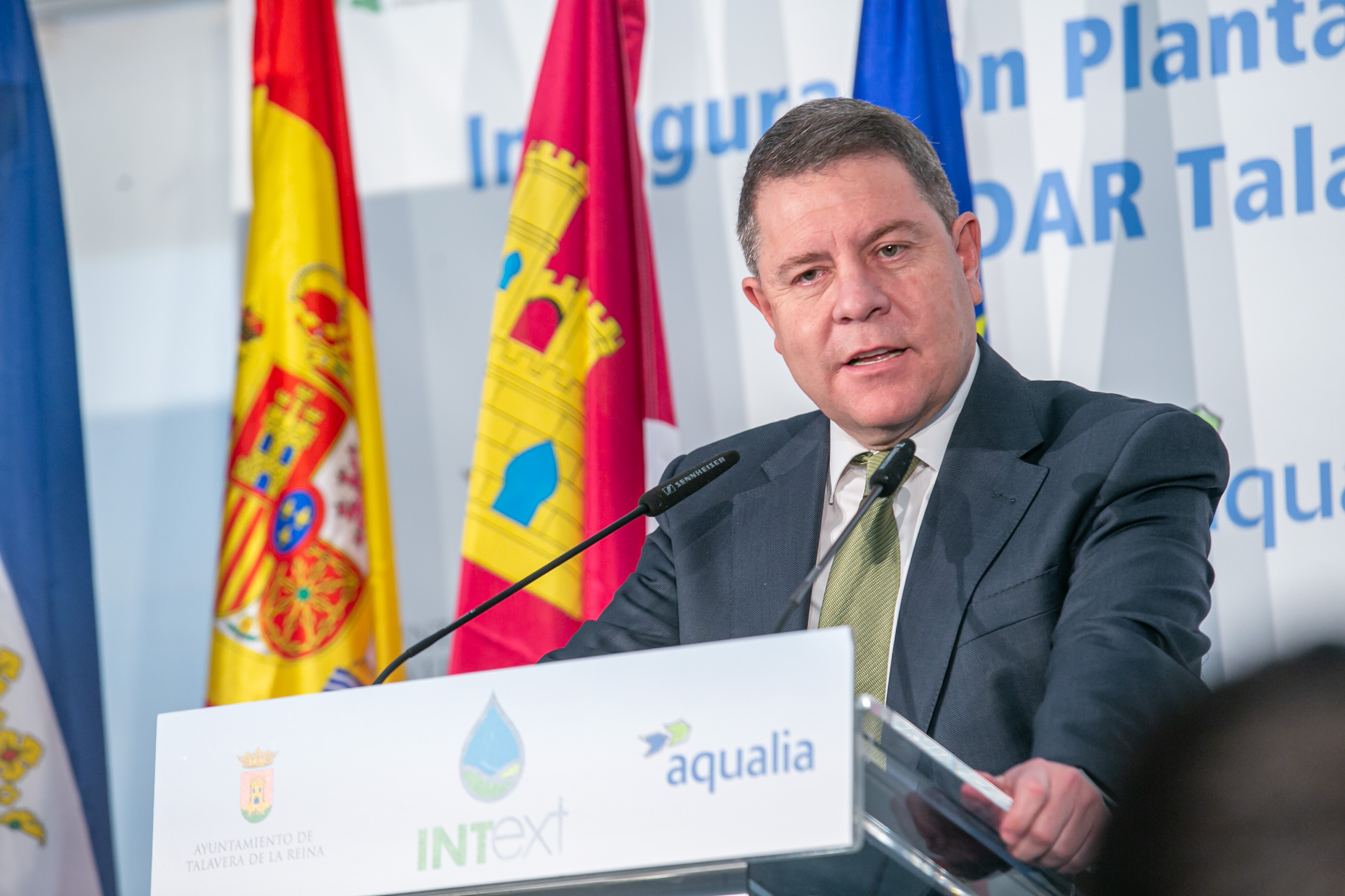 El presidente de Castilla-La Mancha, Emiliano García-Page, acompañado de la alcaldesa de Talavera de la Reina, Tita García, y del director España de Aqualia, Santiago Lafuente, ha inaugurado las instalaciones del proyecto europeo Life Intext, liderado por Aqualia, empresa que gestiona el servicio municipal de Aguas de la localidad toledana.