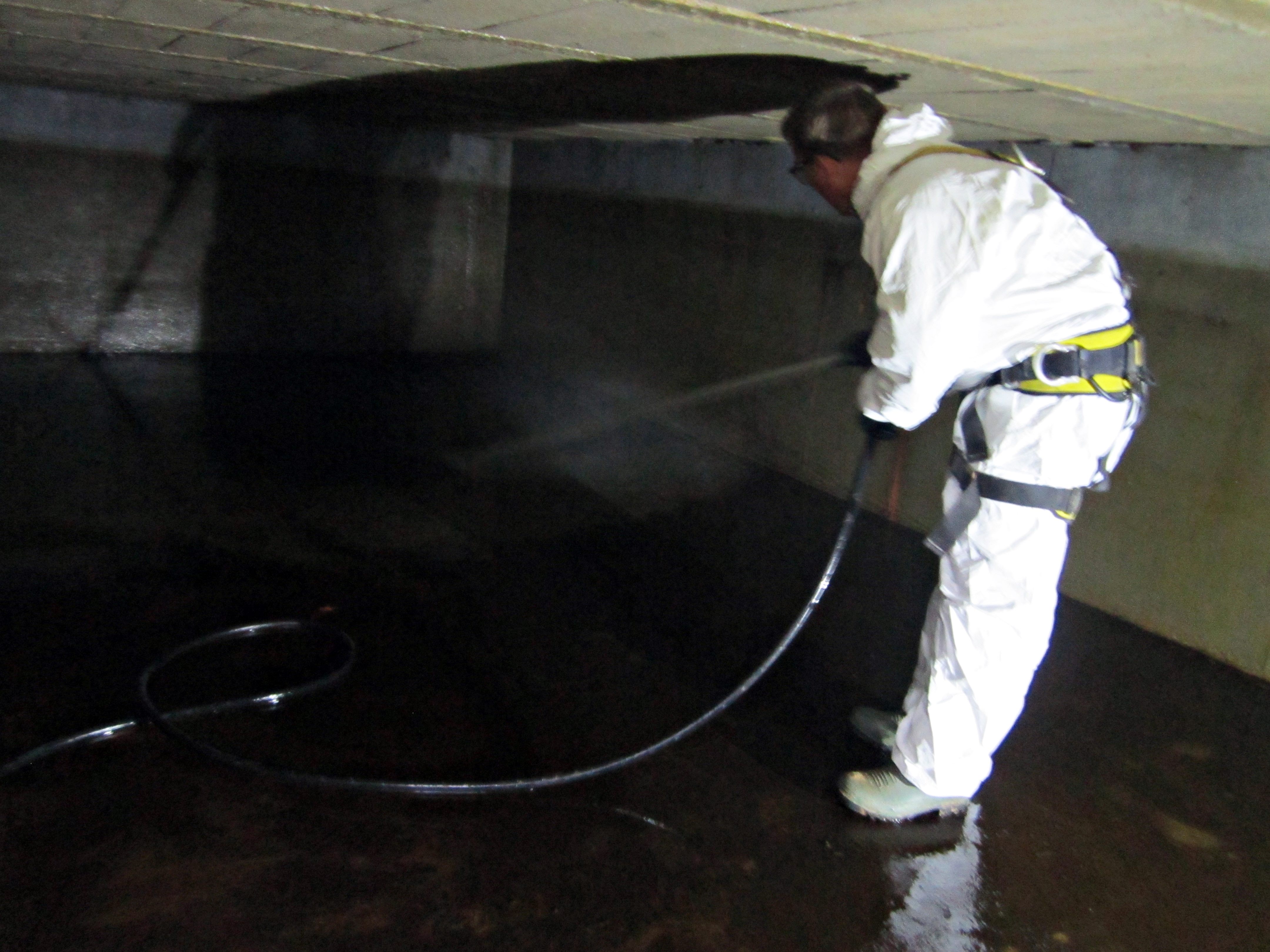 Estas tareas se hacen periódicamente y se ejecutan en tres fases: en primer lugar se vacía y se limpia el interior del vaso. Después se revisan y reparan, si es necesario, las válvulas, arquetas, conducciones y otros elementos del depósito, aprovechando que éste se encuentra vacío. Seguidamente, según dictamina la reglamentación vigente, se limpia con hipoclorito sódico para desinfectar las paredes y suelo.